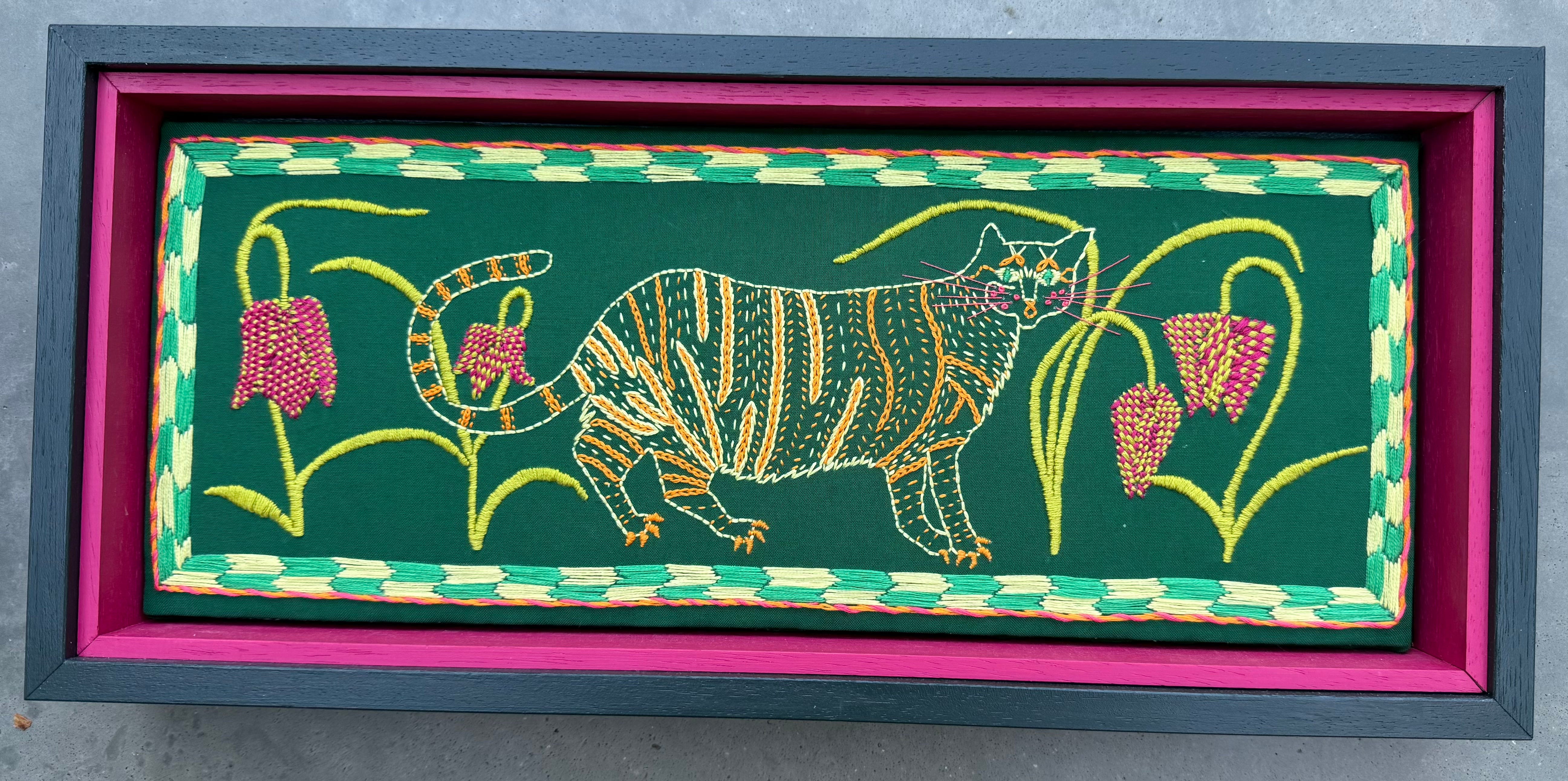 But we must all push ourselves outside of mindlessness sometimes. I have wanted for a while to design and make my own embroidery, but knew I’d never do it without peer pressure (Peer pressure is VERY useful….I have peer pressure to thank for most of the stuff I’ve EVER completed in my life). So I signed up to do an online course with The Fabled Thread, where loads of us have been coaxed through a process of creating a design, making it work for an embroidery, and finally stitching it up over the last ten weeks.