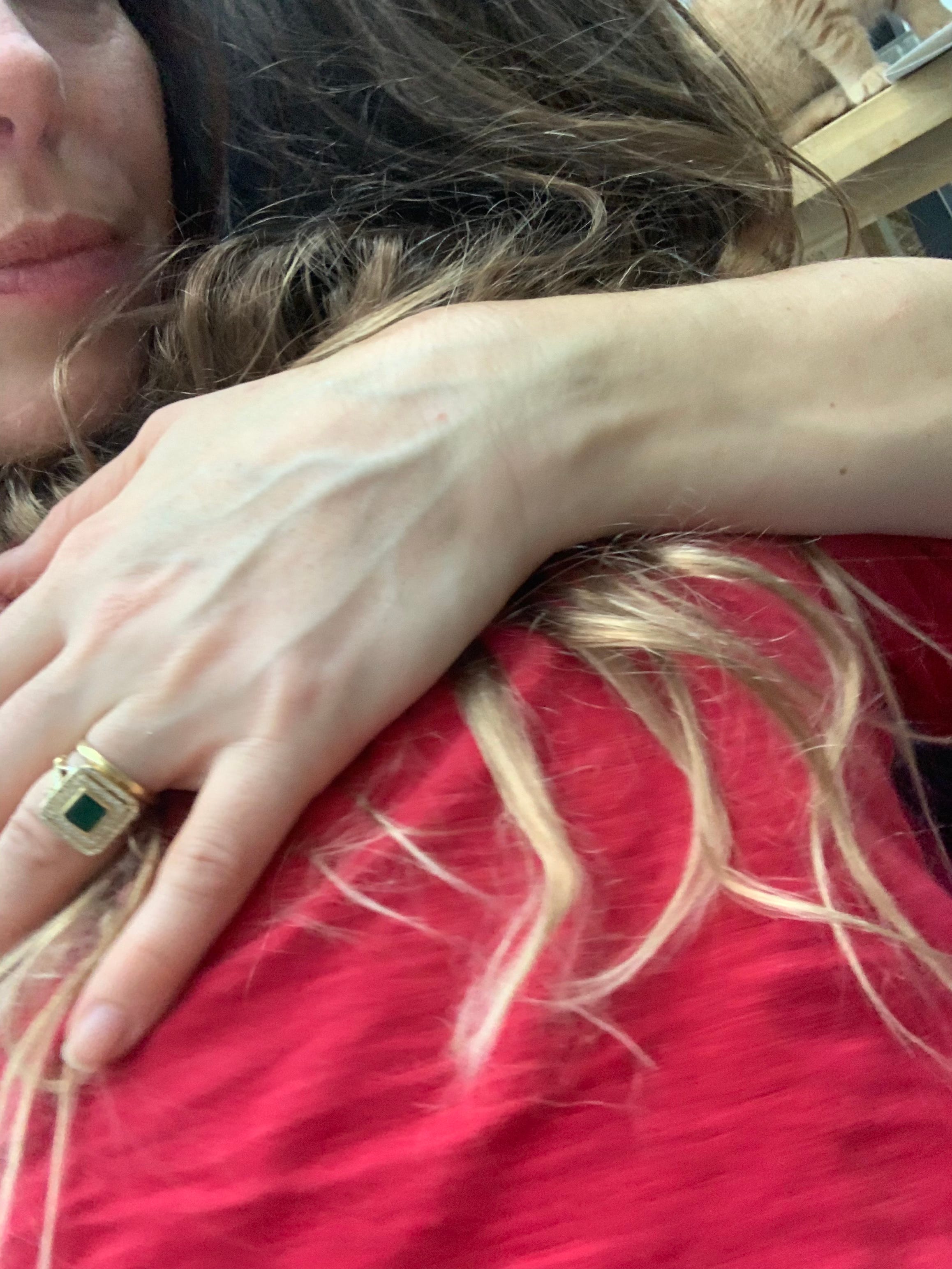 I’m the not-huggy person, my daughter is very huggy, which is frustrating for her. When my sister and I stay at each other’s houses, we make a point of emptying the dishwasher, and bringing each other cups of tea and coffee in bed in the morning.