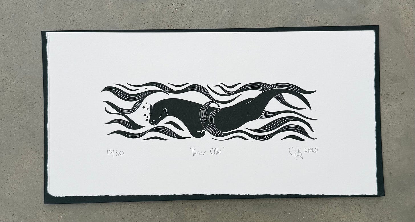 How is it that an otter eating salmon very loudly doesn’t bother me in the slightest and yet I cannot deal with my own Rotter breathing??? Very odd. I am getting all of these framed and the otter is going to Rotter’s place of work with him, to remind him of our priorities….which are, put simply, to have an otter. Cally’s substack is here.