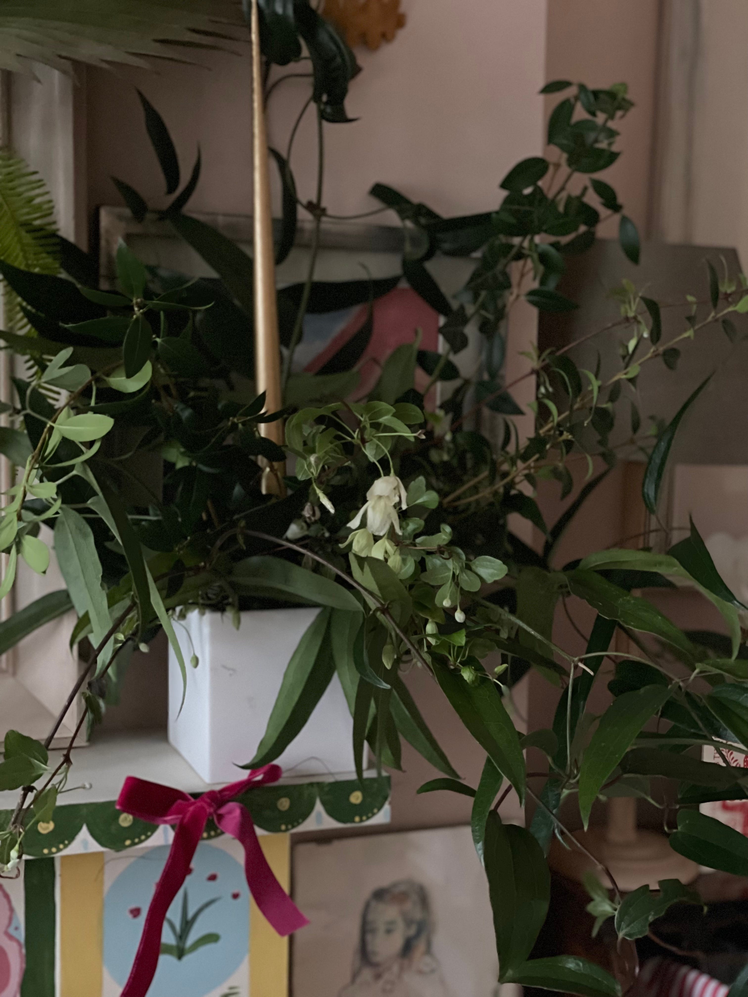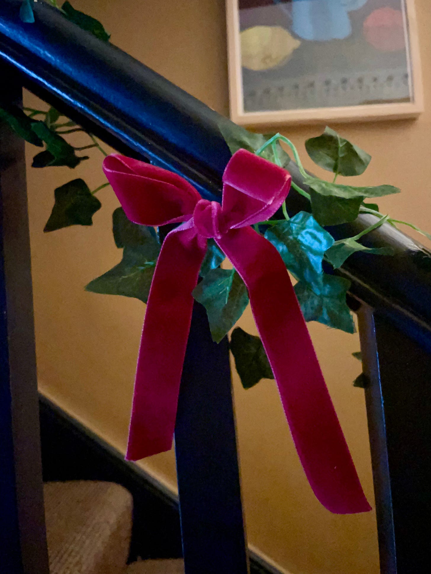Bows everywhere, and creating with greenery makes me insanely happy. I’m inspired to do something more with twigs and fairy lights - watch Georgie making a very lovely thing here which I’d like to emulate somehow because I’ve got a lot more baubles that need hanging.