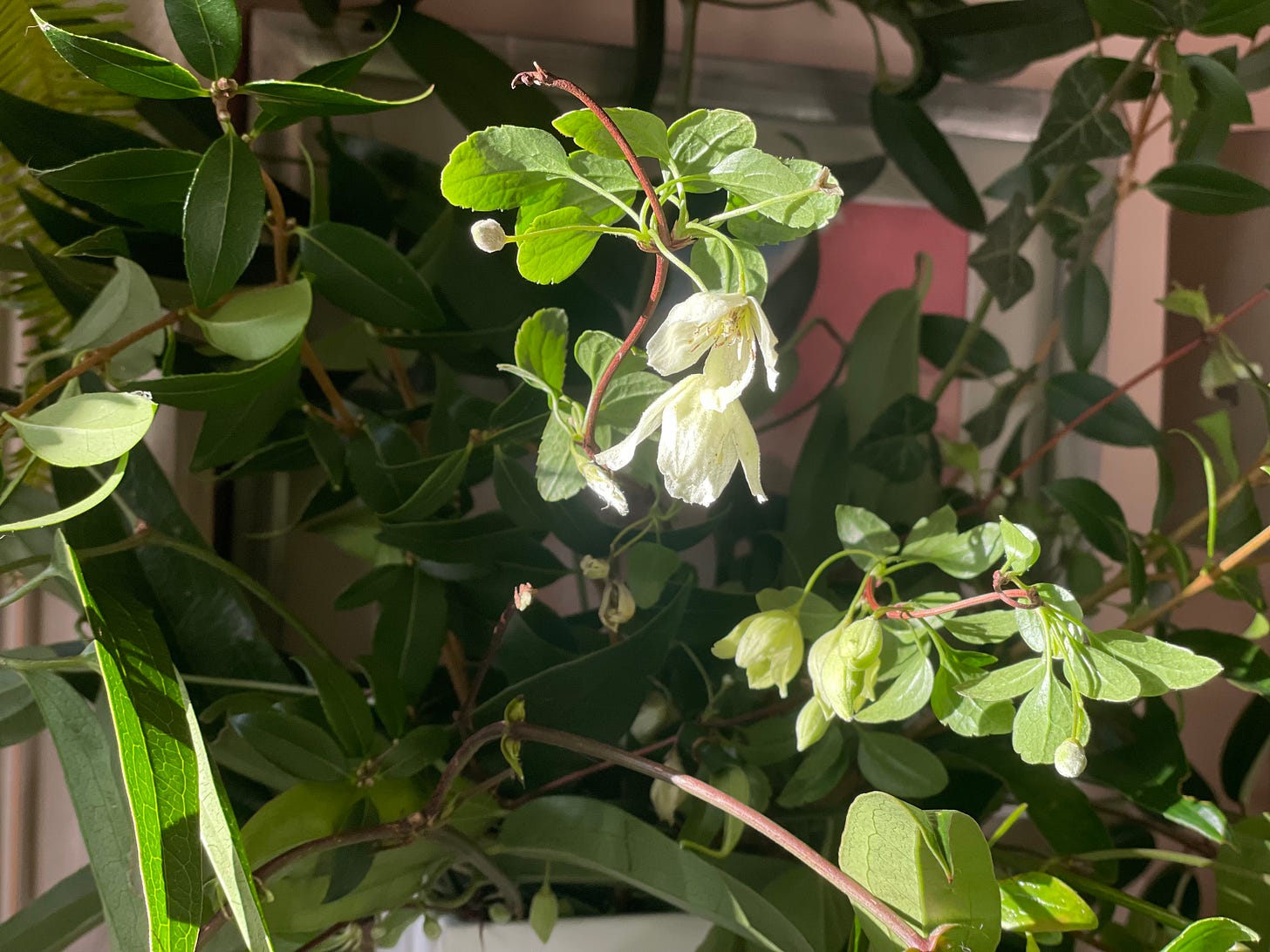 Clematis cirrhosa - incredibly beautiful but can easily get lost outside as it’s so delicate - better bring it in!